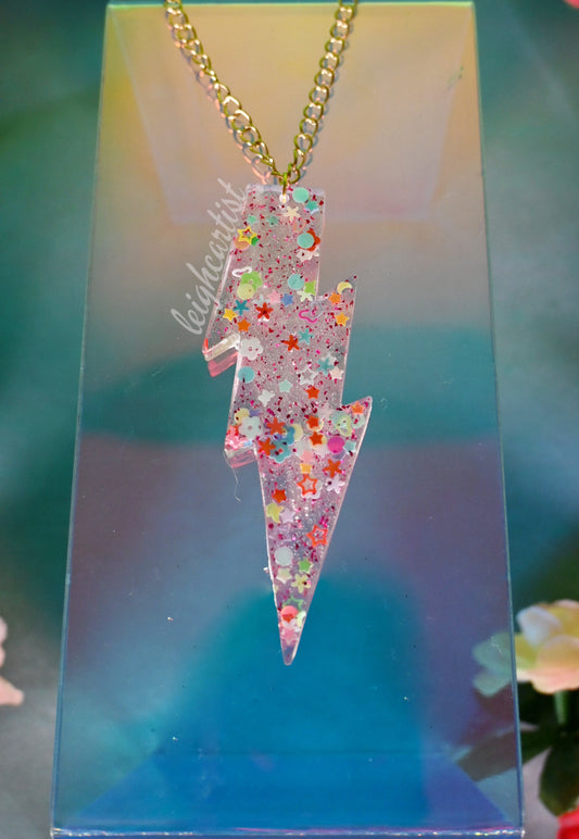 Barbiecore Oversized Lightning Bolt Resin Necklace