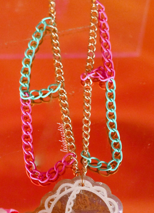 Pastels and Lace Resin Necklace