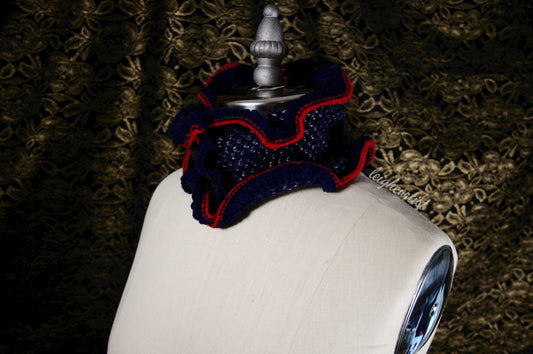 Blue & Velvet Knit Ruffle Scarf