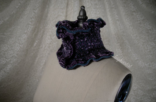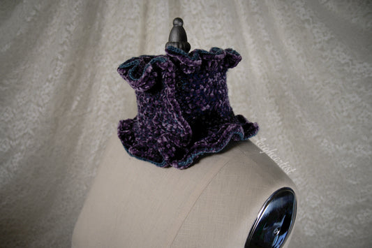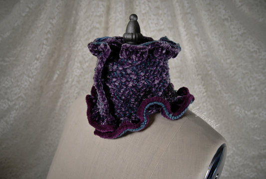 Purple Velvet Knit Ruffle Scarf