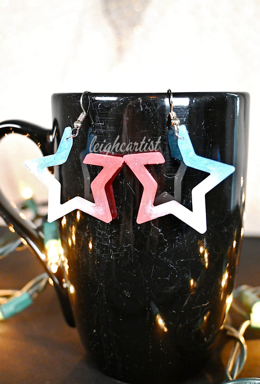 Red White & Blue Hollow Star Resin Dangle Earrings