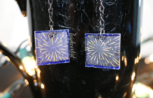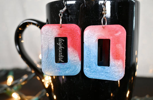 Red White & Blue Hollow Geo Resin Dangle Earrings