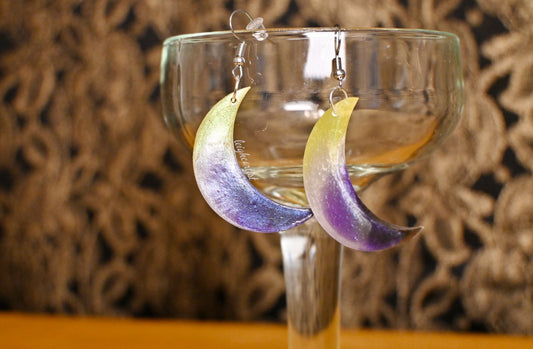 Nonbinary Flag Crescent Moon Resin Dangle Earrings