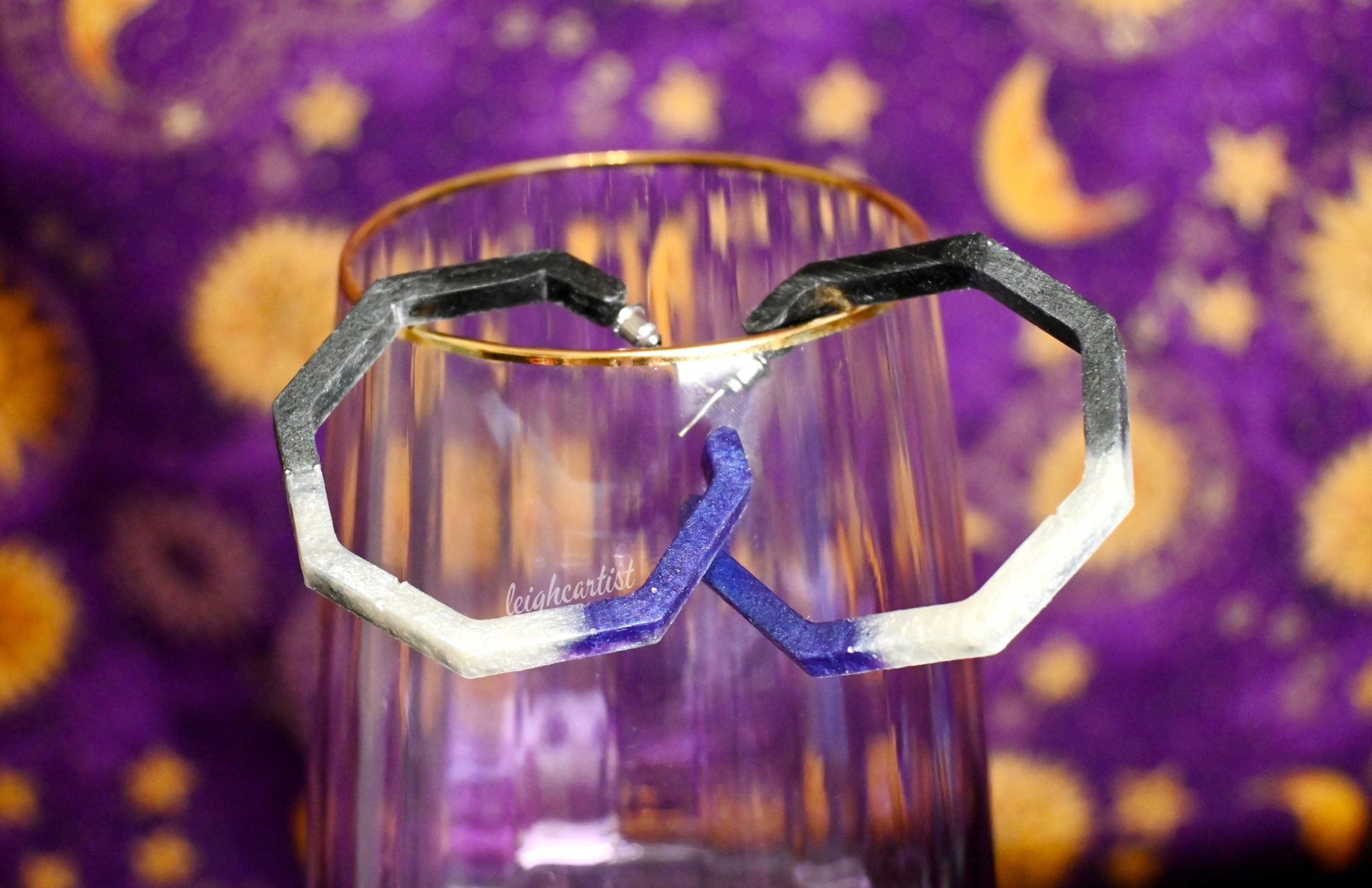 Part of my year-round Pride collection, these geometric hoops put a unique twist on the hoop earring style. They feature the colors of the ace flag along the length of the hoops, letting you rep your pride in style.