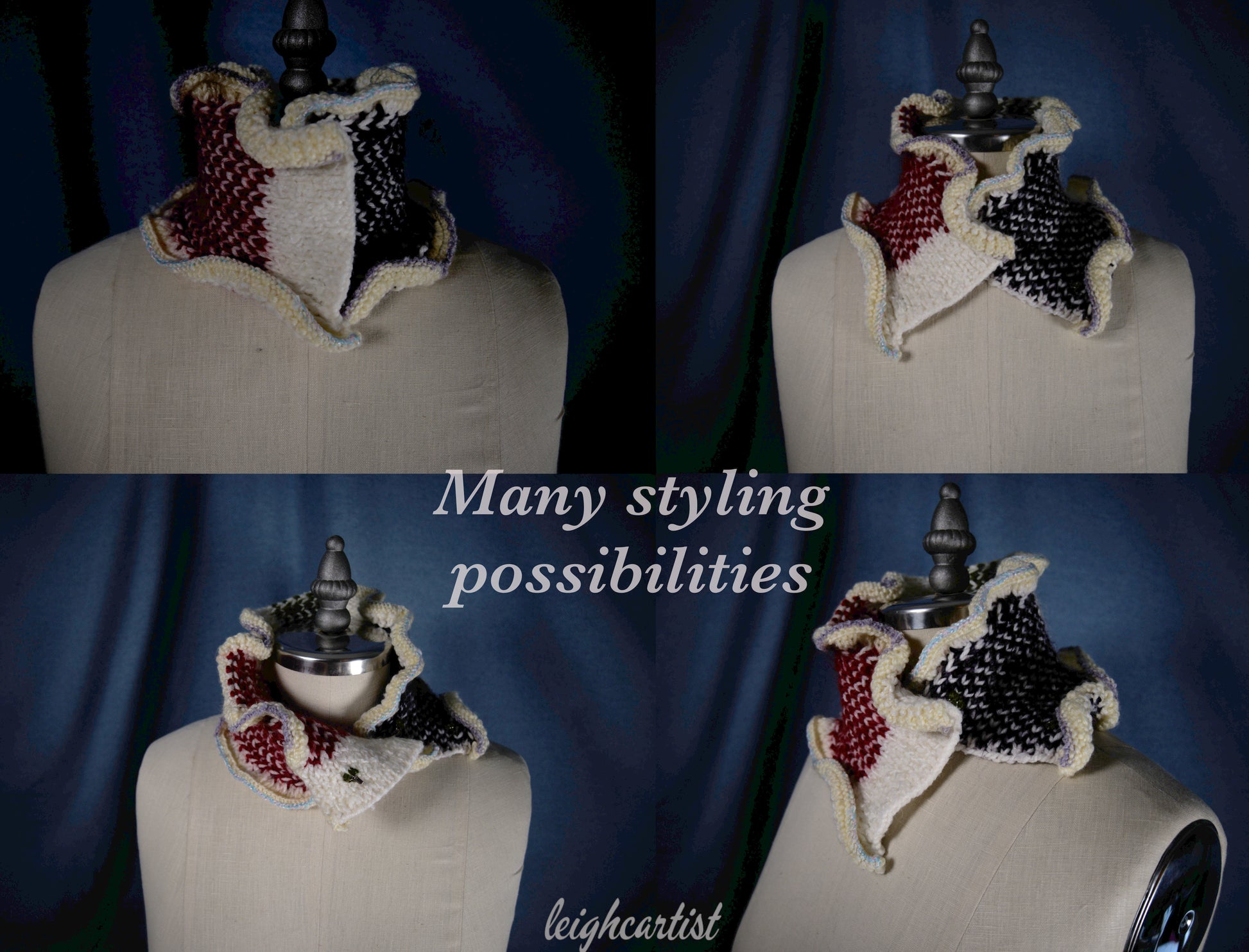 These ruffle scarves were inspired by high Victorian lace collars - but knitted to keep you warm through the cold season, and in a variety of colors and yarn types to match any wardrobe!