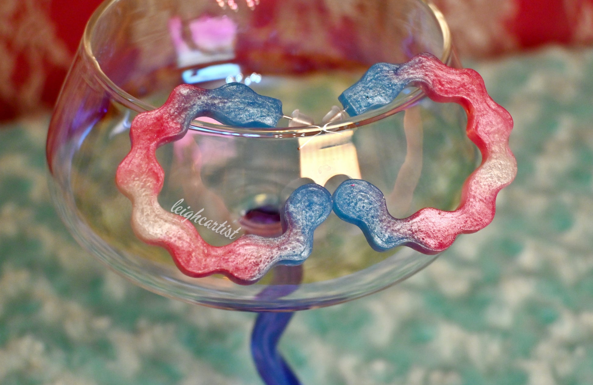 Part of my year-round Pride collection. This funky, wavy take on hoop earrings is a great way to subtly flag your trans identity. They feature the colors of the trans flag along the length of the hoops, so to the casual observer it'll look like a soft pastel ombre. But those who know, will know right away.